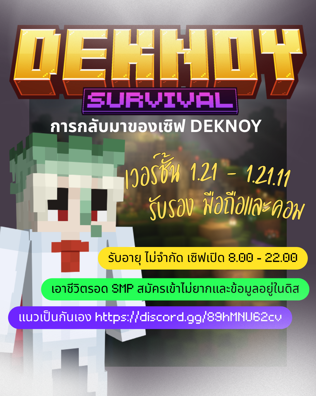 เซิร์ฟเวอร์แนว Survival ที่เน้นสังคมคุณภาพและมิตรภาพที่ดี