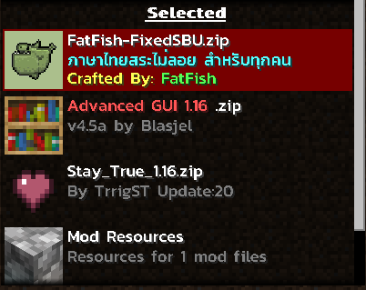Resource Packs: vanilla, file/Stay_True_1.16.zip, file/§cAdvanced GUI 1.16 §r.zip, file/FatFish-FixedSBU.zip (incompatible)